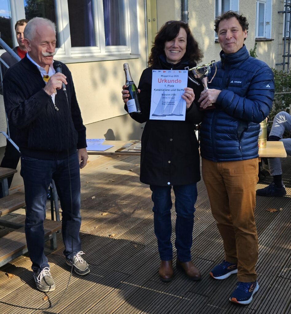 Beim Absegeln im Yachtclub Berlin Grünau wurde auch der Müggelcup ausgewertet und Preise verliehen. In der Wertung für Katamarane und Skiffs ging der Pakal dieses Jahr an Birgit und Frank, vor Martin Sattelklau und der Segelcrew mit Alex, Felix, Carla und Sandra. Herzlichen Glückwunsch. Die komplette Ergebnisse liste findet ihr hier: Ergebnisse Müggelcup 2025