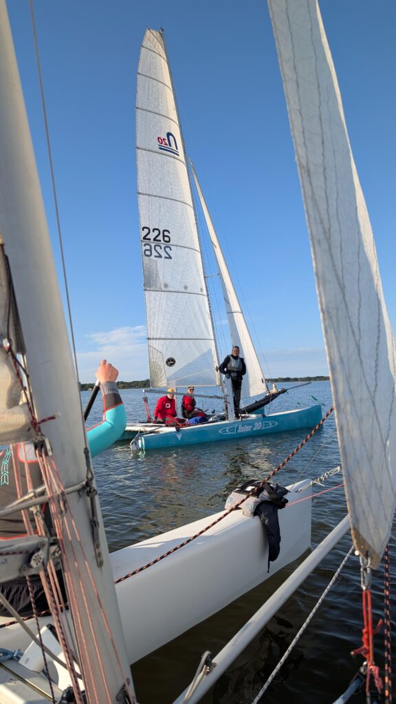 Letzten Herbst trafen wir zu acht die Entscheidung, diesen September Rund Rügen segeln zu wollen. Auf zwei Nacra Inter 20 wollten wir in Ahrenshoop aufbrechen, um dann durch die Darß-Zingster-Boddenkette weiter rund Rügen und wieder zurück zu segeln. Um kein Gepäck auf den Booten mitschleppen zu müssen, sollte ein Auto parallel dazu mitfahren und den Lastesel spielen.